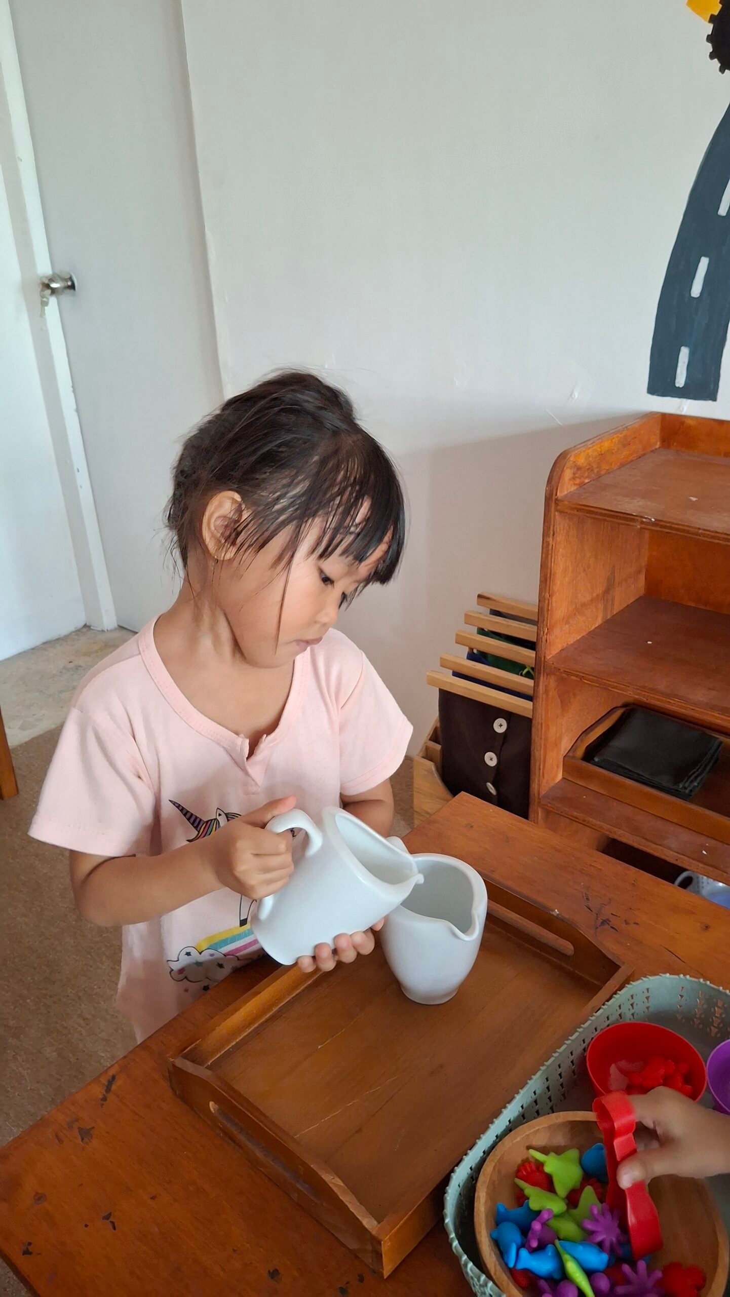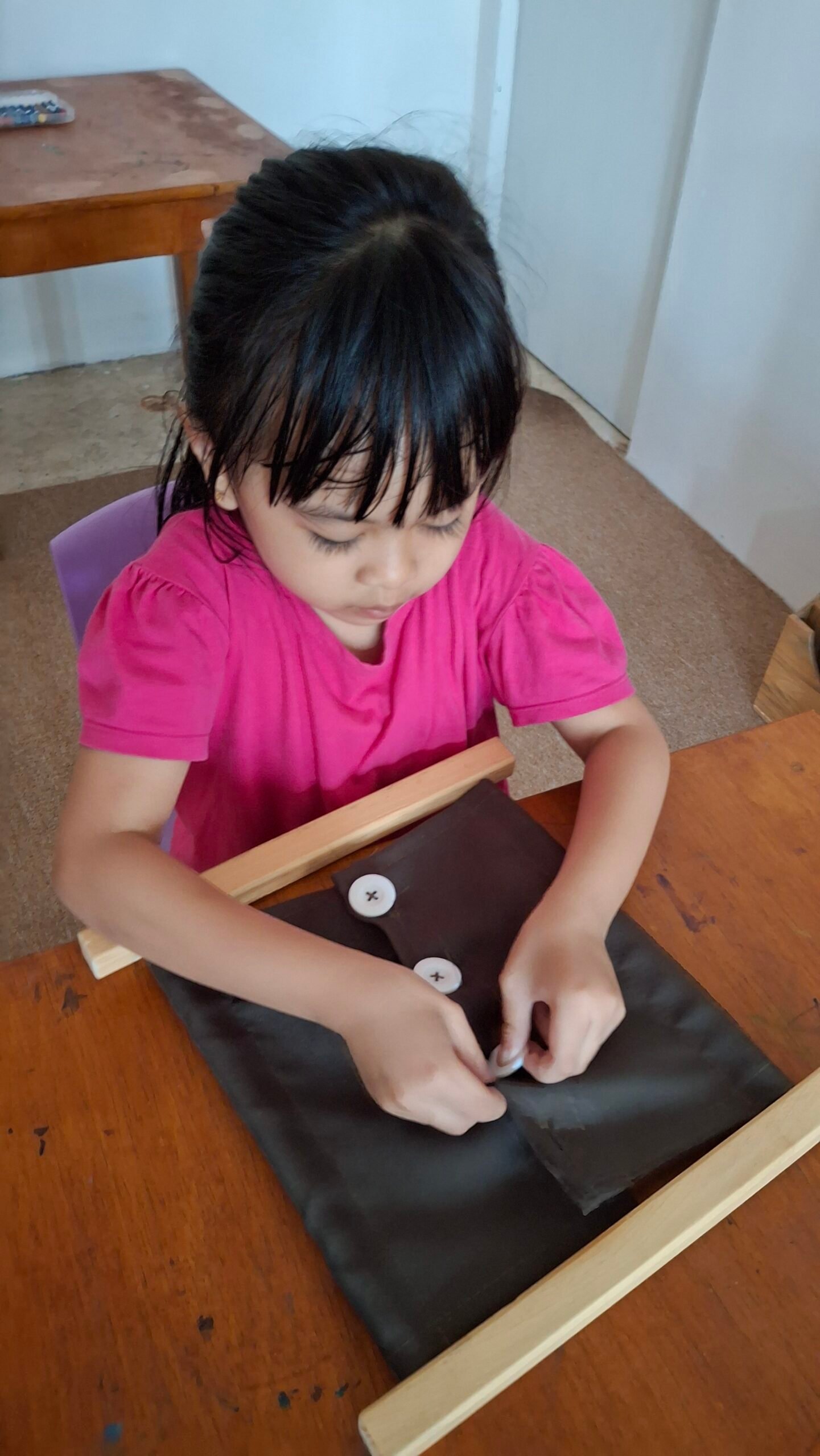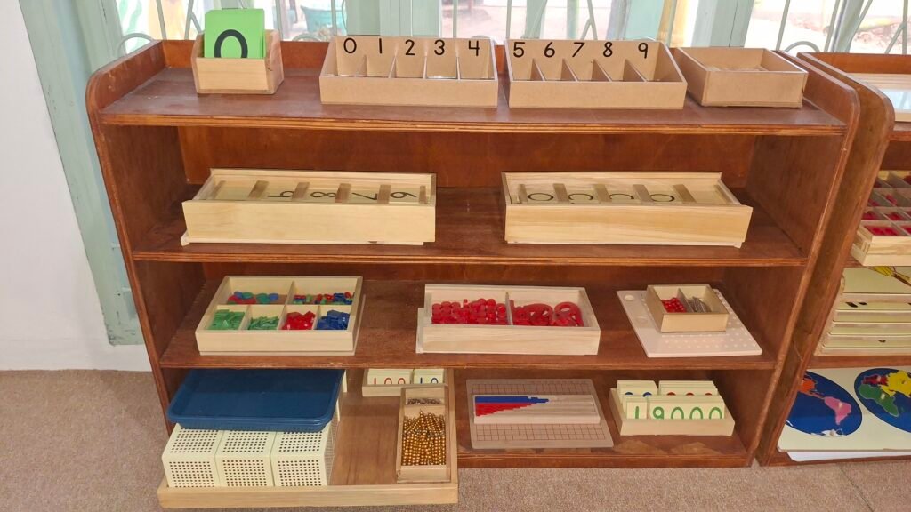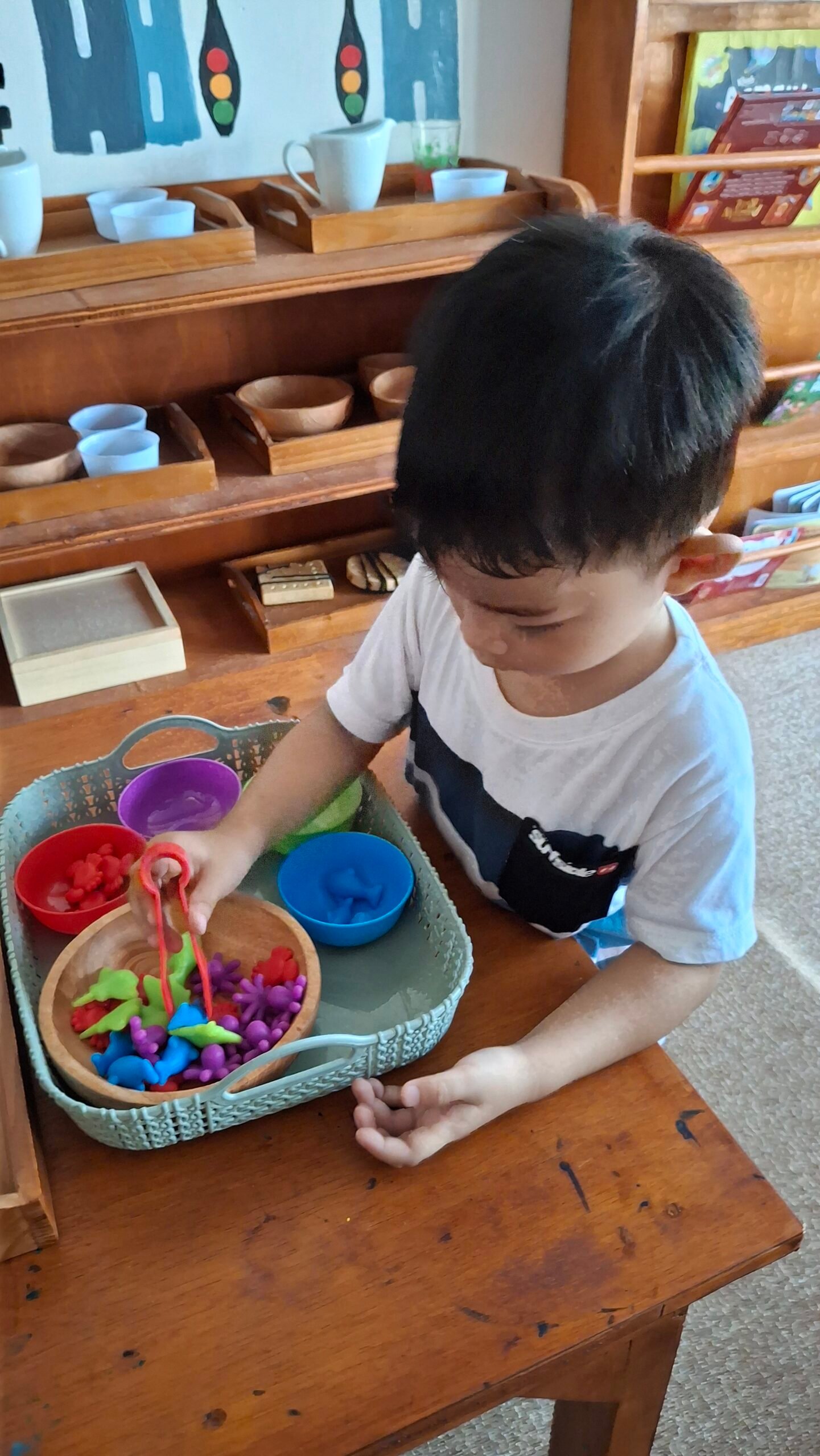 Area sensorial ini merupakan area bermain yang menggunakan material Montessori untuk menstimulasi panca indra anak seperti balok, color box, papan testur, sound boxes, baric tablets, dsb.