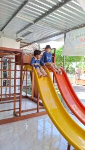Fasilitas bermain berupa brakiasi; ayunan, panjatan dan perosotan.